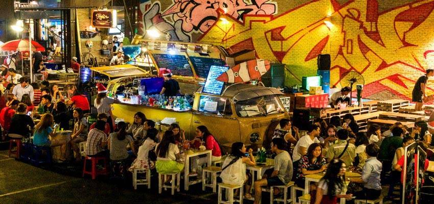 Among Bangkok’s several night markets, Talad Rot Fai Srinakarin weekend bazaar is currently one of most popular among local Thai people. Located on Srinakarin Soi 51, in a suburban neighborhood to east of Bangkok's downtown, it is an open-air market specializing in second-hand retro and vintage items, but also packed with several stalls offering good Thai food and drink. Talad Rot Fai is opened from 5pm till 1am from Thursday to Sunday, and is always crowded despite its decentralized location, especially on Saturdays and Sundays. Due to its enormous popularity since opening, two other similar bazaars were opened in the Ratchada central area, named Talad Rot Fai Ratchada, and in Kaset-Nawamin Road in the extreme north of Bangkok, named Talad Rot Fai Kaset-Nawamin. The original Talad Rot Fai Market, meaning Train Market, began its life on 2011 in a further north location, next to the train tracks, hence the name, between the Saphan Khwai and Mo Chit Skytrain stations and not far from the famous Chatuchak Weekend Market. The market existed semi-illegally on land owned by the State Railway of Thailand, SRT, and so, consequently to an expansion of the Suvarnabhumi International Airport's SRT rail link, Talad Rot Fai was forced to close in 2013. After a brief absence, the bazaar re-emerged on a disused area on Srinakarin Road, just behind the Seacon Square Shopping Mall, in the east of Bangkok and far from its previous location. The huge Talad Rot Fai is divided in three different areas: the Market Zone, Warehouse Zone and a converted factory building called Rod’s Antiques. In the Warehouse Zone, you will find second-hand clothes, home decor items, shoes and fashion accessories in vintage style, old electronic appliances and used auto parts. Most sellers are also hobbyist and collectors of vintage items, so it’s easy to see collections of old cameras, bikes, eyeglasses, Japanese anime toys, hats, and Coca-Cola collectibles items. You’ll even find old-fashioned al-fresco barber shops serving up on-trend, retro-style haircuts for just a couple of hundred Baht. The market's highlight is the Rod’s Antiques. The old factory building is home of antiques and vintage items including motorbikes, kitsch furniture and even classic cars like old and precious Cadillac. Sourced from all over the world, all vintage items are guaranteed to be genuine. The Market Zone consists of more than 2,000 stalls arranged in rows selling any kinds of goods like clothes, T-shirts, shoes, trend fashion, children’s toys and home ware. Inside bazaar there is also a great selection of eating options, practically any kinds of Thai street food. Many stalls serve fresh seafood, cuttlefish, tiger prawns, lobsters and meat skewers cooked on small barbecue; others offer Jompalung noodle soup, spicy somtam, Pad Thai and fried rice. Makeshift bars are placed random among the stalls and shop, many obtained from classic Volkswagen vans and old railway carriages, they sell cheap cocktails and drinks, beer, ice cream and Thai iced-teal. There is also a row of bars and restaurants at the entrance to the market, where you can sit and listen to the live bands.