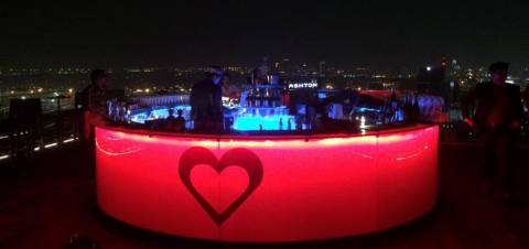 Octave Rooftop Lounge & Bar is located on floors 45th - 49th of the five-stars Marriott Hotel Sukhumvit. Ideally situated in the premier Sukhumvit area, Octave is just a two-minute walk from the Thonglor BTS Skytrain Station. There are many rooftop bars in the city, but no one has a 360 degree view of glittering Bangkok as this three level venue. Octave is an exclusive multi-zone environment, a highlight in the after-dark Bangkok's entertainment, which features a lounge bar, a private room and a 360º view rooftop bar. With resident DJ's playing every night on a comfortable and colourful setting, the music is an essential factor of the lounge experience here. Showcasing new-age fusion food like Asian-style tapas and seafood along with the finest in wines and cocktails, Octave is effortlessly one of hippest destination in town.