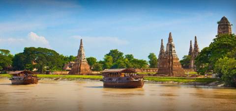 Mekhala provides elegant two-day cruises along the Chao Phraya River between Bangkok and Ayutthaya on three restored teakwood rice barges retracing the paths of former Royal processions. The overnight journey starts around 1:30 pm from Bangkok and ends later in the morning at Bang Pa-In Royal Palace, also known as the Summer Palace, in Ayutthaya, or vice versa. There are only six rooms on board, offering an unparalleled sense of intimacy and personalization as a real cruise on the River of Kings. The cruises offer a luxurious setting and excellent service on board, including double air-conditioned cabins with private bathrooms, teak decks, a delicious Thai dinner, breakfast and snacks, water, juice, tea and coffee with meals during the journey, and the service of a professional multi-lingual crew.