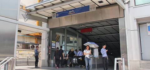 Sukhumvit MRT Station is a subway station on the Blue Line of MRT, Metropolitan Rapid Transit, the underground rapid transit system serving the centre of Bangkok. The station is located underground on Asok Montri Road in Watthana District, close to the intersection with Sukhumvit Road. It is one of the busiest stations on the network, because it is a interchange station with the Sukhumvit Line of Bangok's Skytrain, Asok BTS Station is just one hundred away, and also because it is placed next to one of Bangkok’s busiest business districts.