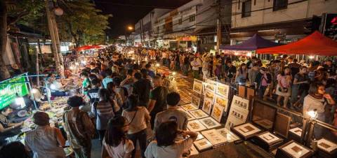 Located within the old city walls, Sunday Walking Street Market offers one of the most exciting shopping experiences in Chiang Mai. The great thing about this market is that is has a bit of everything to satisfy the wishes of each visitor, from plenty of stalls selling souvenirs, local art and handicrafts to numerous stands that offer tasty street food and even areas set up for foot massages. The Sunday Walking Street also serves as a venue for all kinds of local events, from live music performances and dance recitals to beauty contests performed on the stages set along the main road and its small alleys. As the name suggests, it takes place every Sunday from 5.00 pm until 11.00 pm, with the first vendors opening their stands at 4.00 pm and a few stalls remaining open even until midnight. The outdoor market starts at Tha Phae Gate and running the length of Ratchadamnoen Road until Wat Phra Singh temple, about a kilometre in total, and includes also its smaller side streets and food stands branching out from the main road. The road is closed to traffic during this time and since the market is one of the city's most popular tourist attractions, it does get very busy, especially during high season. The items on offer lean more towards local handicrafts rather than the large variety of products on display at the Chiang Mai Night Bazaar. A large part of the goods come from the famous San Kamphaeng Road, also known as the Highway of crafts, although there are plenty of hill tribe vendors that offer the usual assortment of handmade clothes, trinkets, souvenirs, textiles and silver jewellery. When the sun sets, the temples on either side of the Ratchadamnoen Road become food courts where you can taste everything from a simple fried rice dish to deep-fried crickets and there are also plenty of food stalls set up along the entire road.Read More