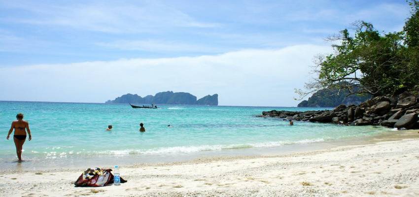 Located in the southern tip of Ton Sai Bay, Long Beach is one of most popular and beautiful beaches in Phi Phi Don. About 600 meters long, it boasts one of most soft and white sand on island. Encircled by lush vegetation, the beach overlooks shallow turquoise waters. At both ends the coral reef is more close to the shoreline and offers great opportunities for snorkeling. Long Beach is far enough from Ton Sai to enjoy a relaxing holiday away from the crowd. It is accessible with a 2km path from the main bay, a little harder to walk at night or by a 5-minute boat ride from Ton Sai. The beachfront accommodations are mainly in bungalows, some of which are high-end. In Long Beach there are only six resorts with restaurants that satisfy every segment of tourists. There is no nightlife on this beach, those who stay here appreciate its tranquility.Read More