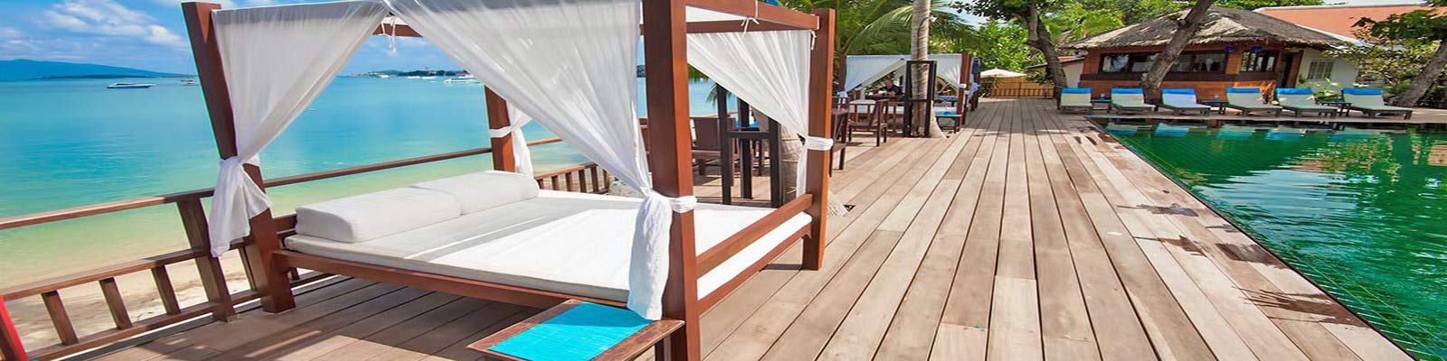 Bangrak Beach Club Samui is set in the middle of beautiful Bangrak Beach, better known among tourists as Big Buddha Beach. Overlooking the white sandy beach and crystal clear waters, the beach club covers an area of 4000 square meters. The centrepiece is a large swimming pool which looks like a tropical lagoon, surrounded by wood decking and tall shady trees, with the main restaurant under a palm-thatch roof. The large restaurant offers traditional Thai cuisine, International dishes, as well as fresh and delicious seafood. At Bangrak Beach Club you can chill out by the sea, take a cool dip in the swimming pool, sunbath on the comfortable sun beds, enjoy delicious food, or take advantage of Happy Hour from 5pm to 7pm every evening on the beach as you watch the sun set in its entire splendour. For sport lovers, club has got a special sport corner, a bar with big plasma monitors and a professional pool table. You can play a round of pool with friends or watch exciting football matches while sipping your refreshing drinks. Free Wife for all guests is available.Read More