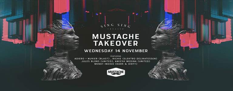 Support your local heroes Adiero + Nukier (Blast), Richie (Elektro Delikatessen), Jules Blons (United), Aneesh Medina (United) & Mendy Indigo (Dark & Dirty) on Wednesday 14th November and get ready for one hell of a good night! #MustacheTakeover.