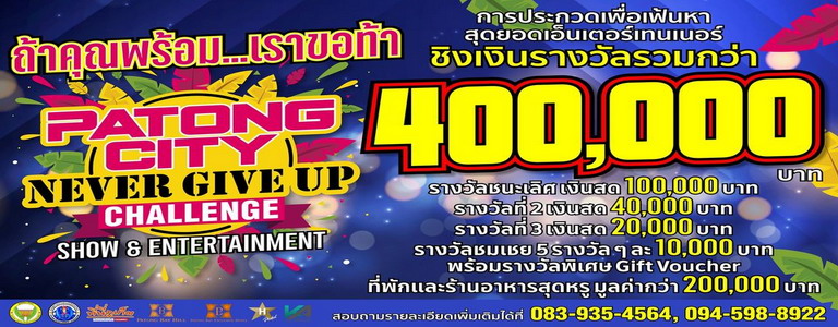 2020-10-31 00:00:00 2020-10-31 00:00:00 Asia/Bangkok PATONG CITY NEVER GIVE UP CHALLENGE 2020 PATONG CITY NEVER GIVE UP CHALLENGE 2020 - Saturday, 31 October 2020 from 13:00